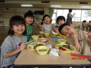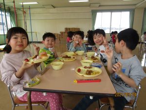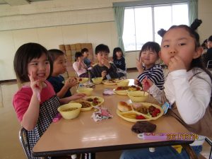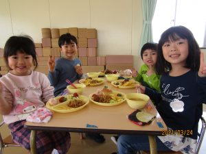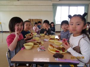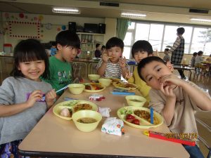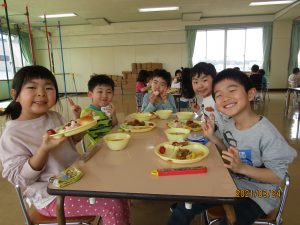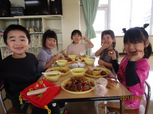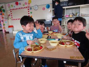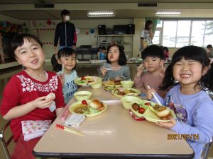 年少、年中、年長みんなでバイキング給食を楽しみました。